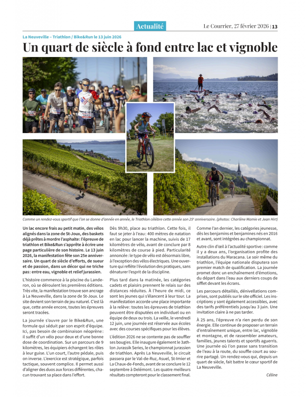 25e Triathlon et Bike&Run samedi 13 juin 2026, Triathlon des écoles vendredi 12 juin 2026